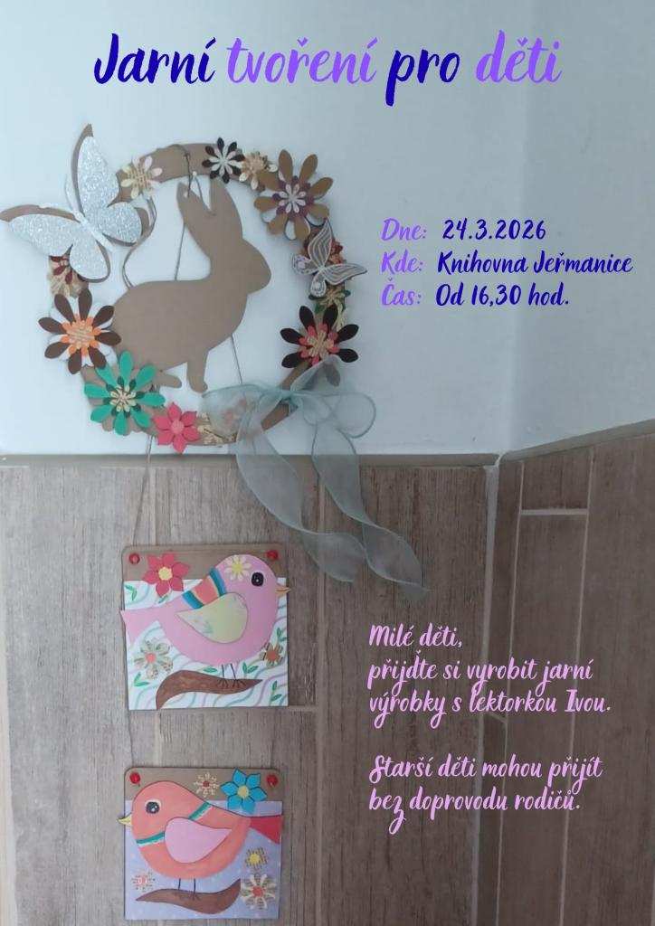 Tvoření pro děti v obecní knihovně. Přijďte si vytvořit jarní dekorace. Starší děti mohou přijít bez doprovodu rodičů!