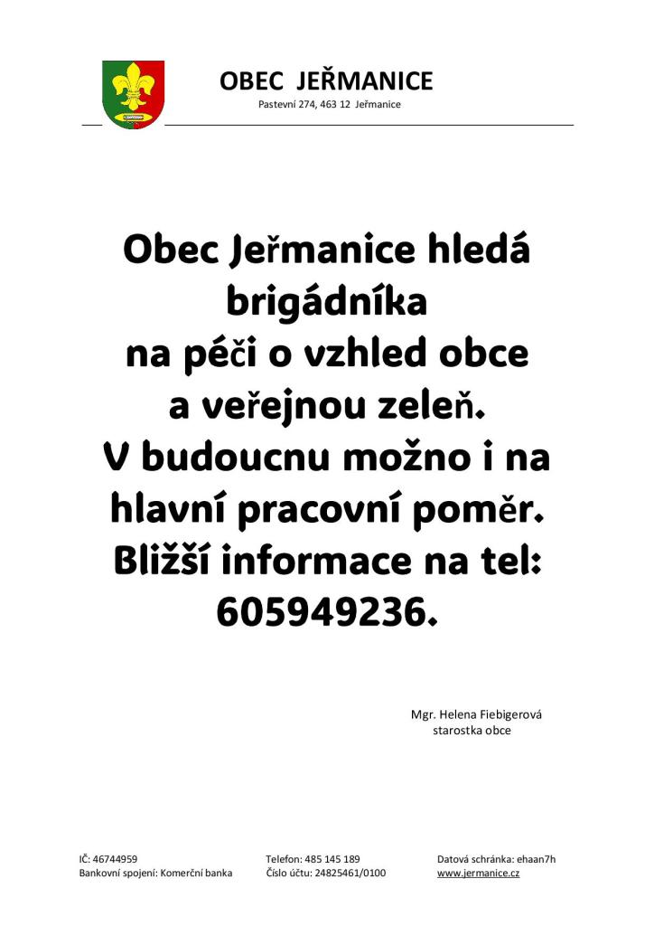 Obec Jeřmanice hledá brigádníka s možností na HPP.
