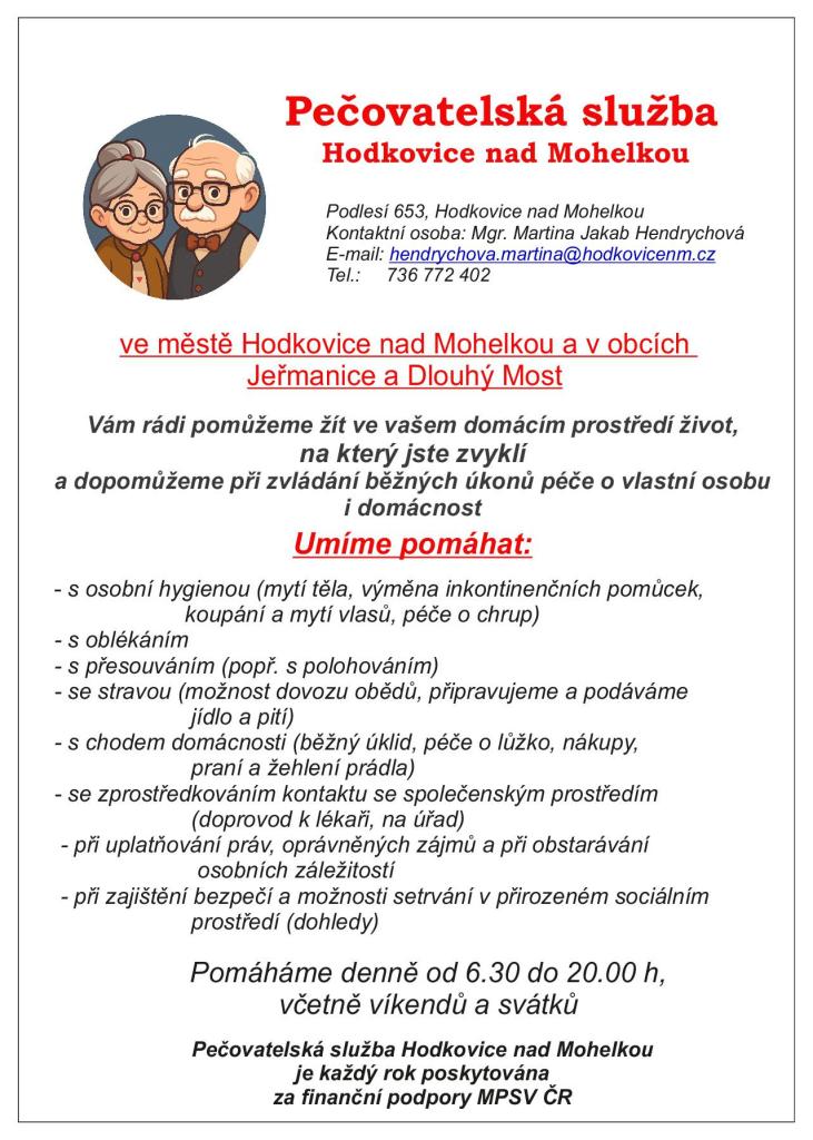 Podařilo se nám upravit územní působnost poskytování sociálních služeb (v současnosti především terénní péče) tak, aby území obce Jeřmanice spadalo i do působnosti města Hodkovice nad Mohelkou. Více informací v přiloženém letáku.